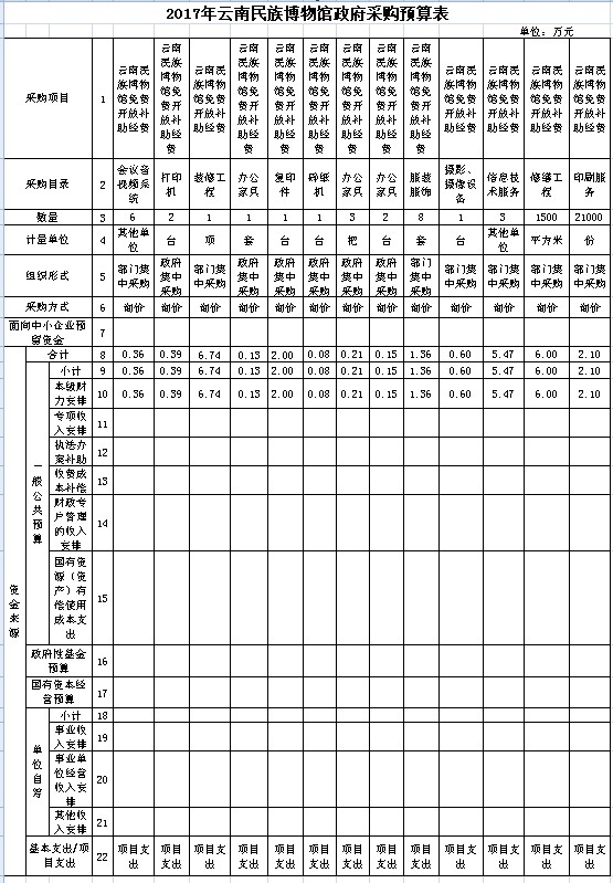 2017年雲南民(mín)族博物(wù)館政府采購(gòu)預算表